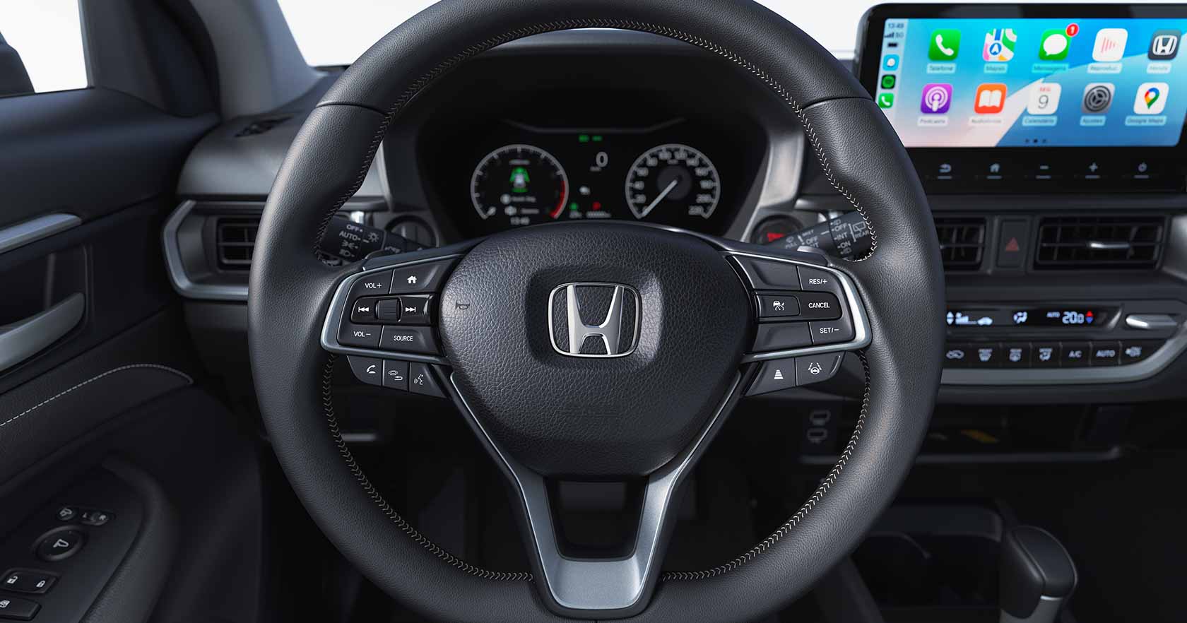 En el interior, la WR-V incluye un tablero digital TFT de 7 pulgadas y un sistema de infoentretenimiento compatible con Apple CarPlay y Android Auto inalámbricos, junto con elementos como cargador inalámbrico, climatizador automático y puertos USB en ambas filas. La disposición de controles y funciones está orientada a facilitar el uso cotidiano sin recurrir a configuraciones complejas.