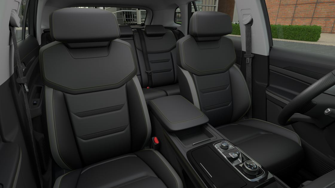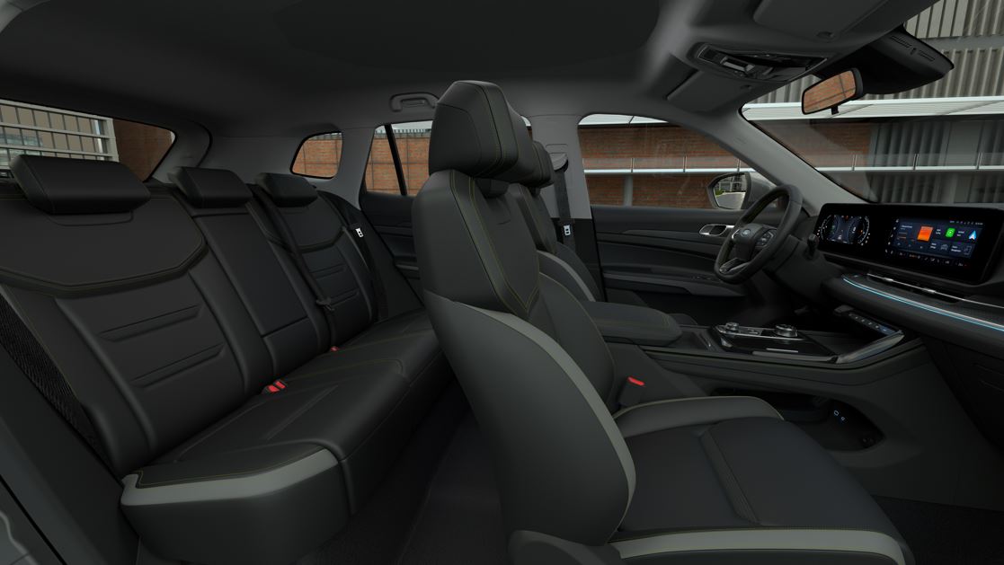 - Interior espacioso: La segunda fila ofrece uno de los espacios más generosos del segmento, con respaldos abatibles 60/40 para mayor flexibilidad de carga. Los asientos delanteros, tapizados en cuero, cuentan con calefacción y ventilación.